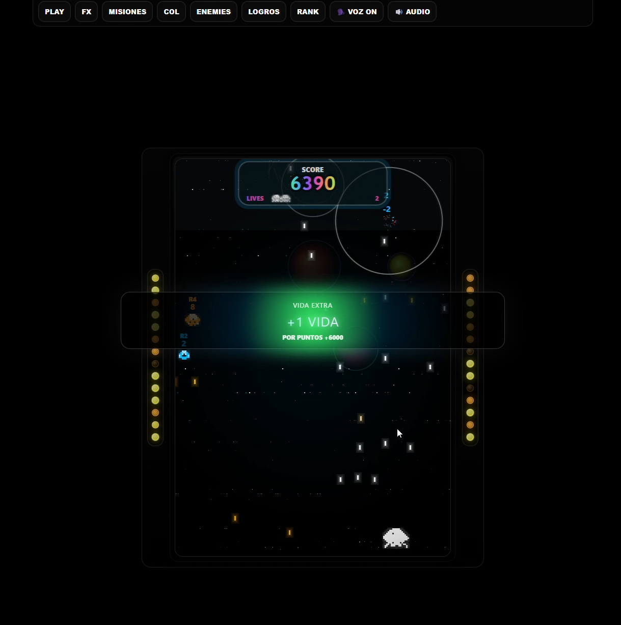 Es un juego rápido, directo y adictivo: mueves tu nave con precisión, disparas a oleadas de criaturas/robots espaciales y vas subiendo de fase mientras construyes tu “build” con recompensas tipo roguelike. Cada partida te exige más reflejos, mejor decisión y adaptación. Gracias a la IA que incorpora (el futuro de los juegos) 🧠💥 👾 Hasta 50 enemigos diferentes Enemigos con rangos (común/raro/épico/legendario) y variedad visual real: no son “pegotes”, se distinguen. Apariciones especiales con alerta, entrada más “cinemática” y comportamientos más agresivos. ⚠️👑 Cuando un enemigo está a punto de caer… aparece fuego en su nave 🔥🚨